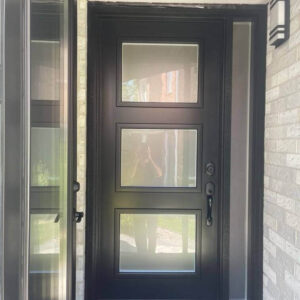 Black Steel Front Door with 3 Glass Inserts and 1 Sidelite